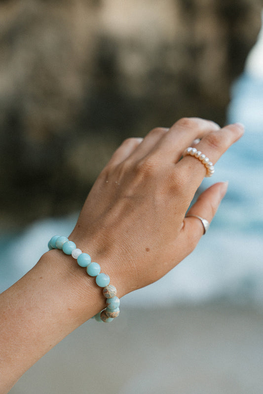 Balance x Courage Bracelet - Aquamarine, Shell, White Agate