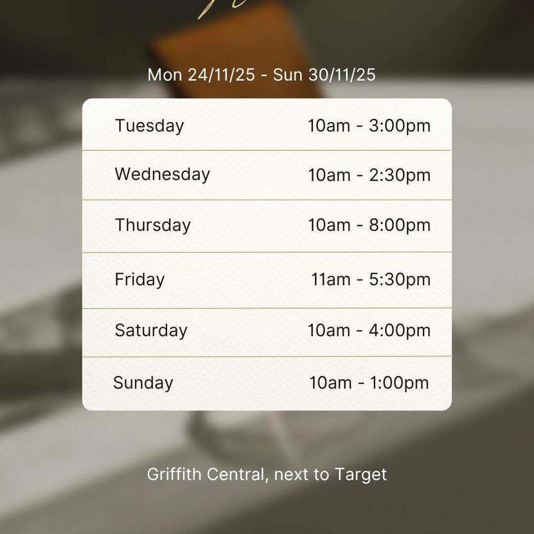 New Pop-Up Shop open at Griffith Central. You can find it next to Target. See opening times below