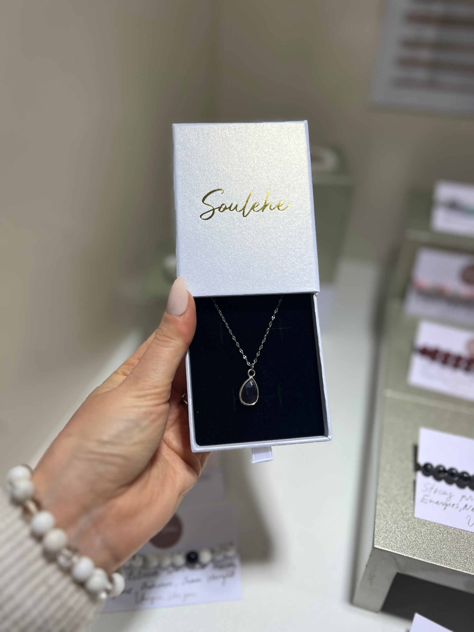 A lot of the crystals and gemstones that we use are porous, which means that their colour and brightness can change over time due to humidity, perfumes, and cosmetics.
