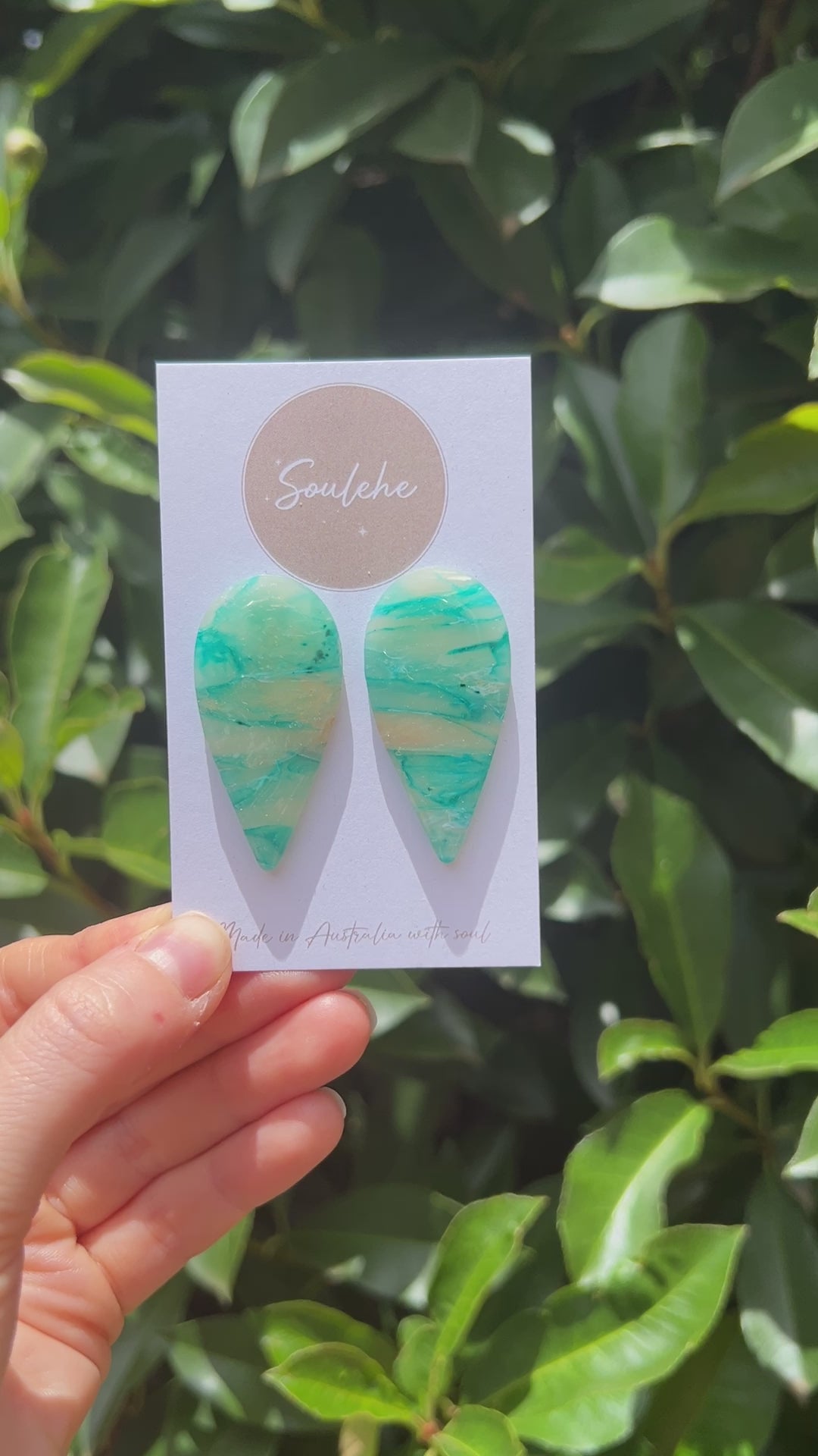 All of the Polymer Clay earrings are handcrafted. Some earrings may include gold or silver leaves, recycled make-up or a clear resin on them to give them a nice shine!