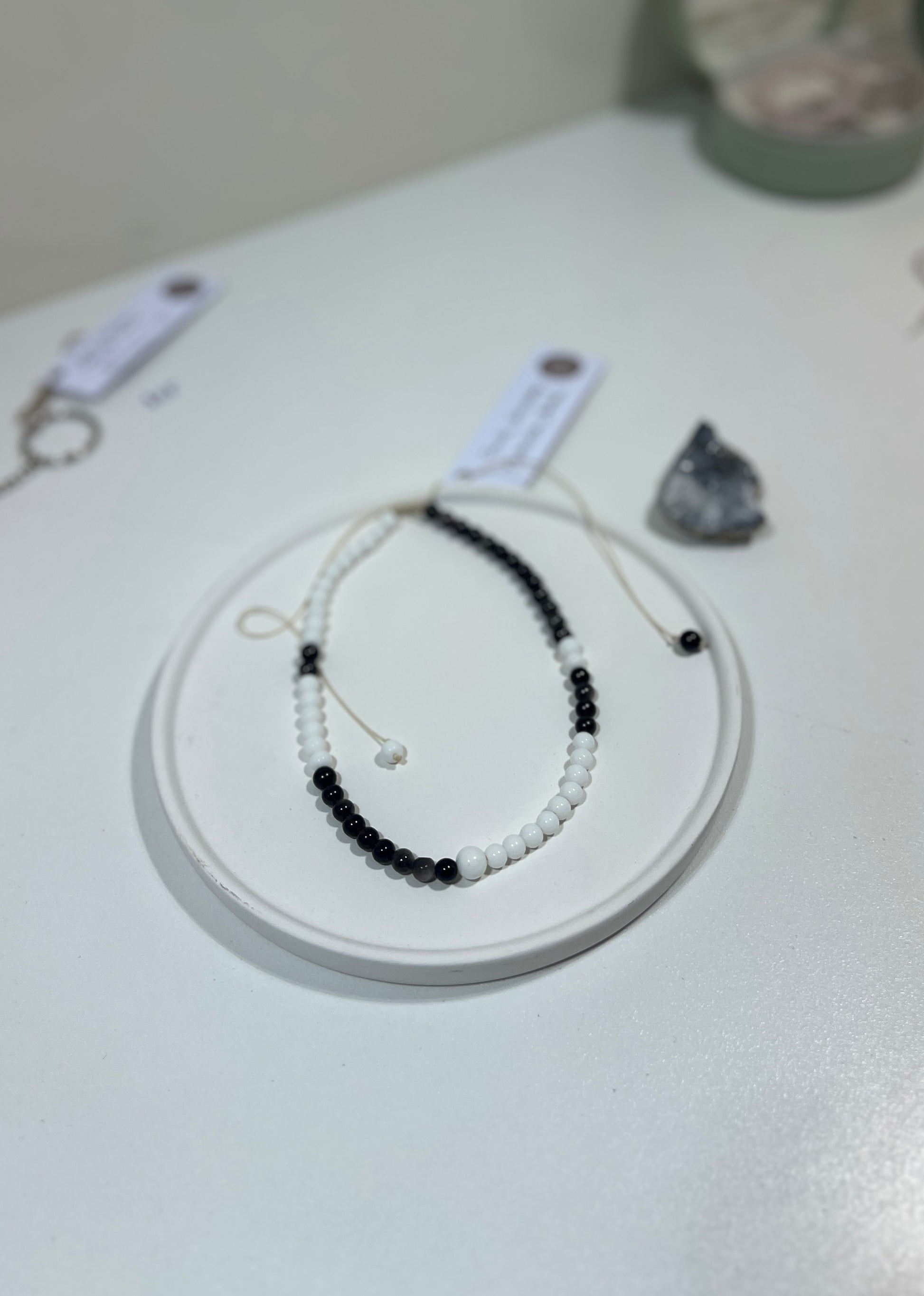 Truth, Grounding, Protection, Balance • White Agate & Obsidian