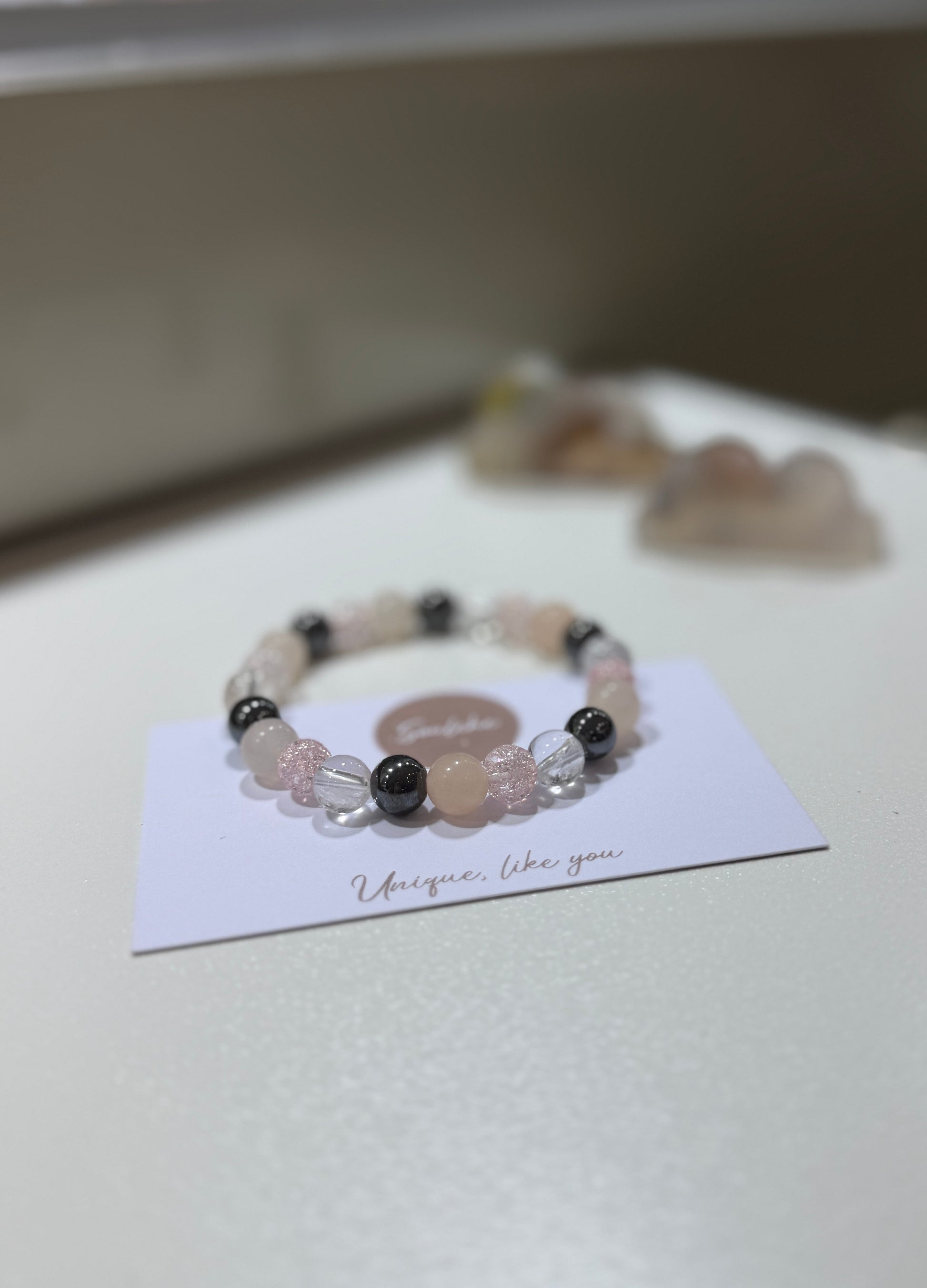 This bracelet brings together Hematite, Pink Aventurine, and Clear Quartz to support grounding, positivity, and personal power.