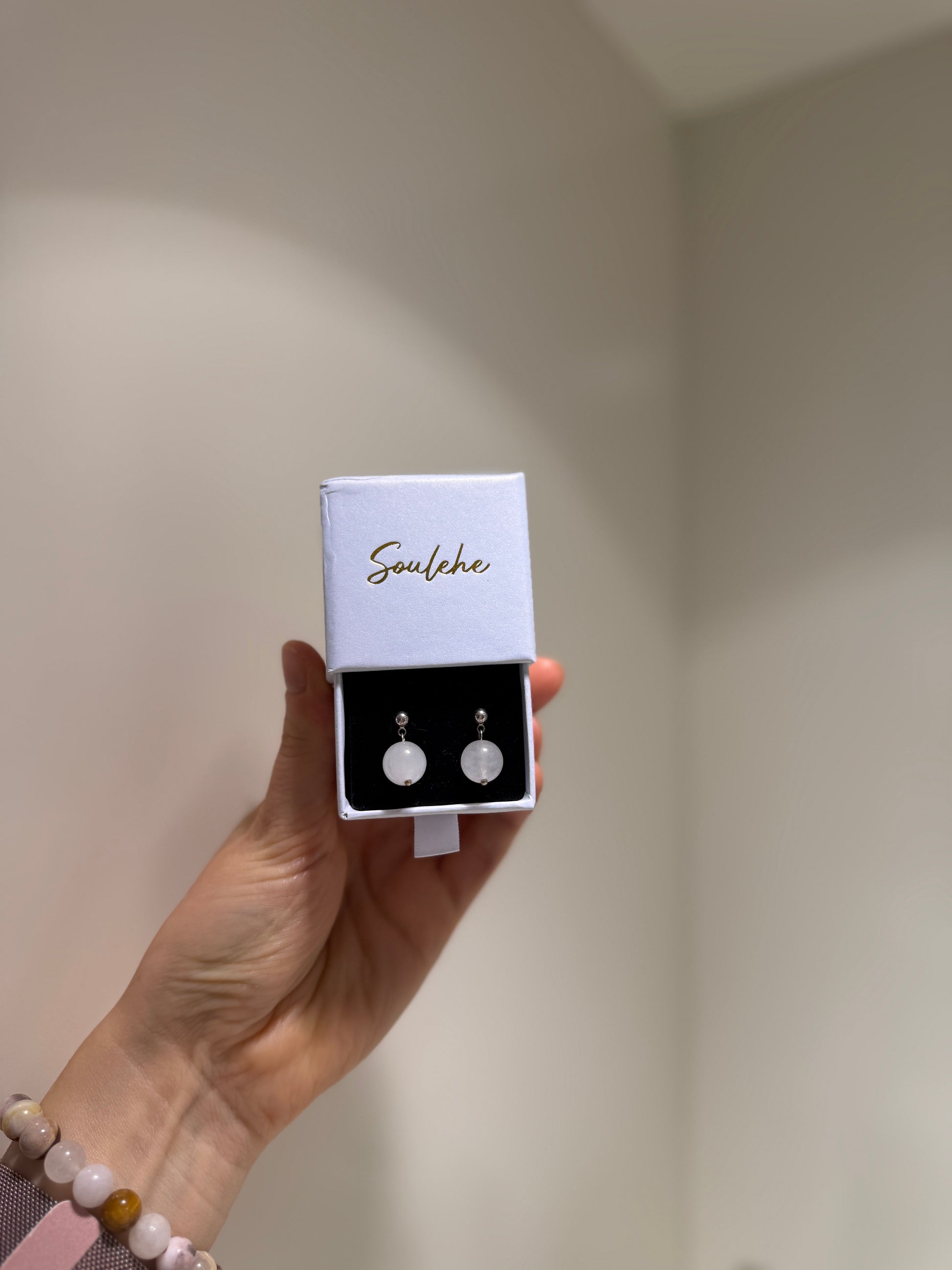 A lot of the crystals and gemstones that we use are porous, which means that their colour and brightness can change over time due to humidity, perfumes, and cosmetics.