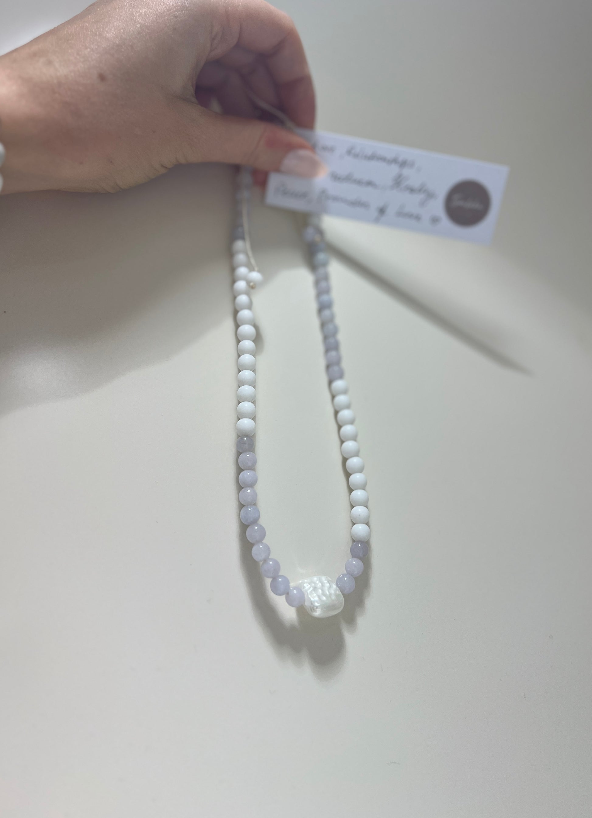 Serenity, Intuition, Decision making • White Agate, Aquamarine & Shell