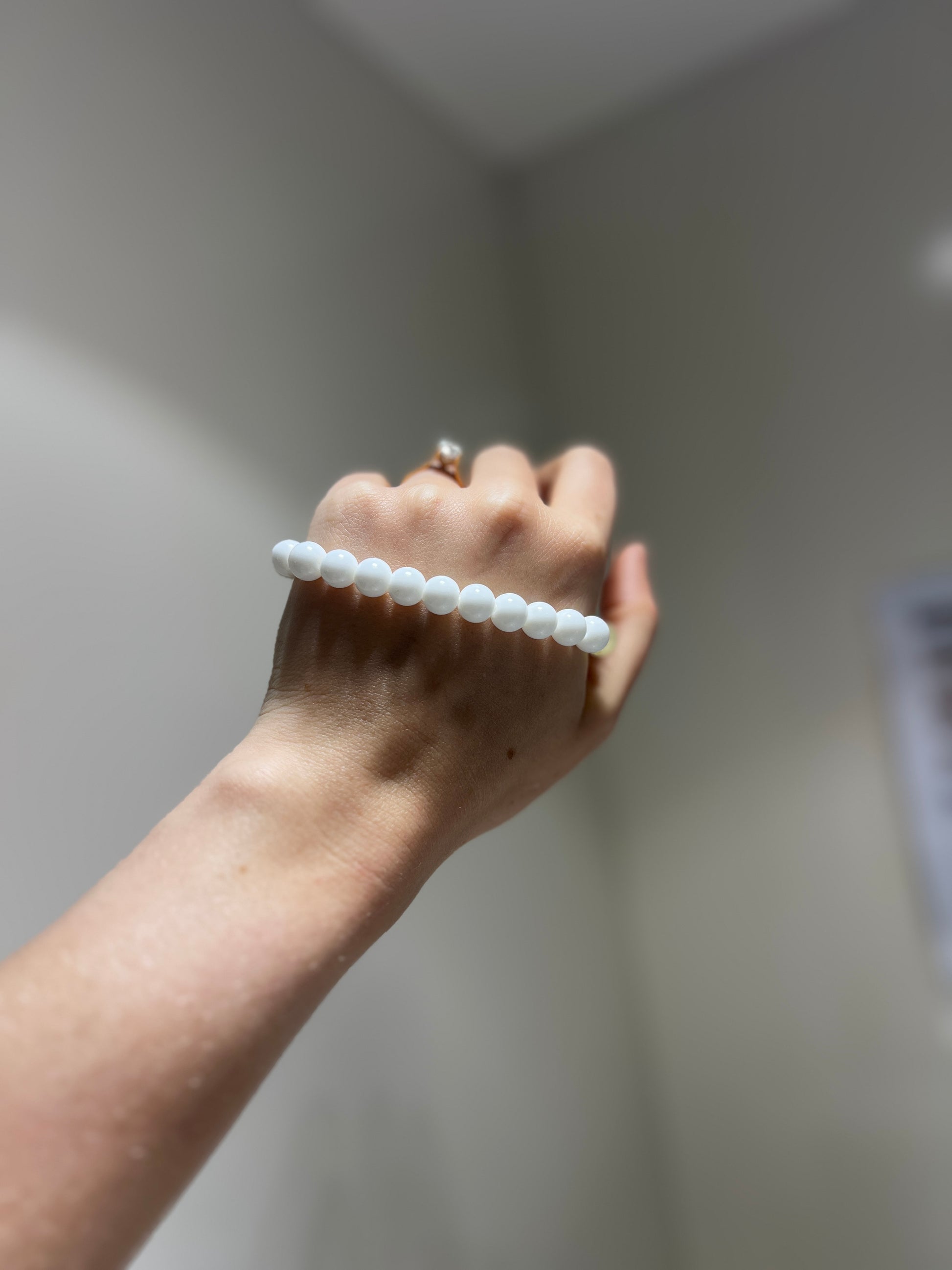This elegant accessory combines Citrine's radiant positivity with White Agate's protective calm. Citrine enhances clarity and abundance, while White Agate offers balance and emotional healing, promoting love and self-security.